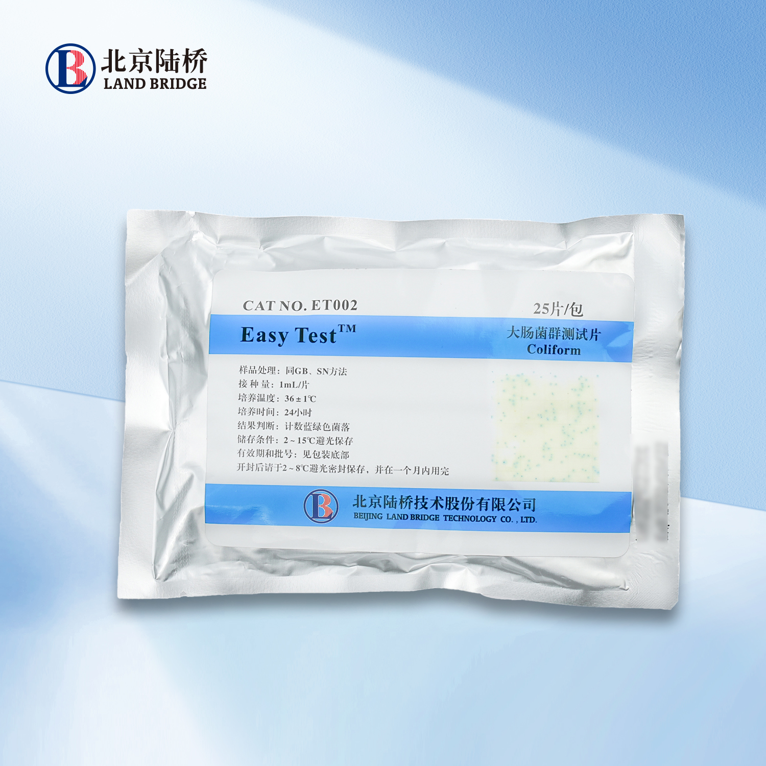 货号:ET002 规格:25片/包 产品说明:用于食品中大肠菌群测定